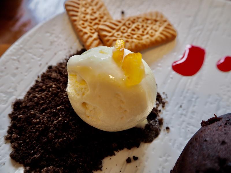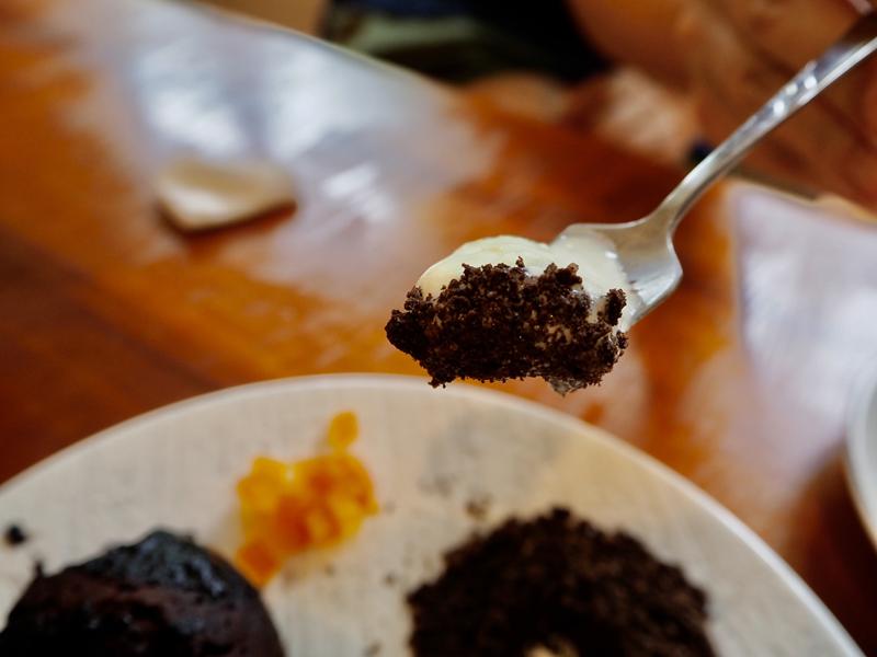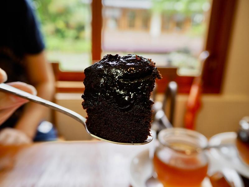蛋糕體入口即化選用苦甜巧克力製作,吃起來不會太膩,更吃的到巧克力香