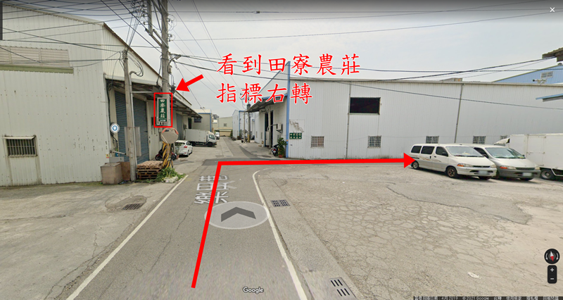 環中路五段轉進樂田巷後順著走,看到田寮農莊指標右轉