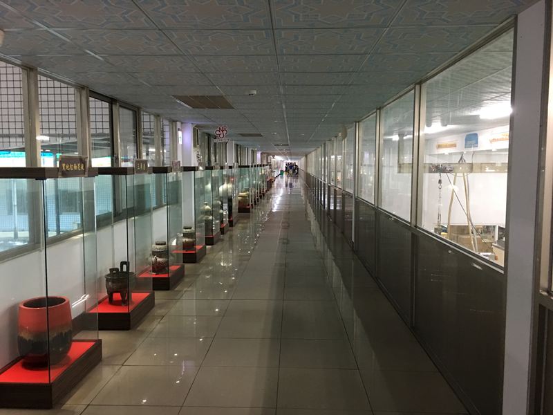 採開放式的生產線的參觀走廊長到看不見盡頭
