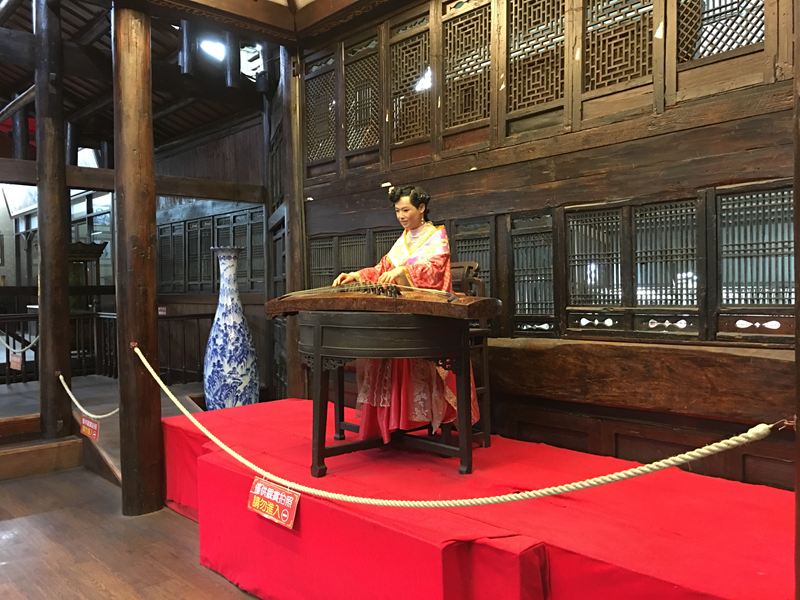 2F正中間在彈著古琴的女子臘像製作的很生動