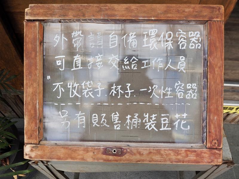 白水豆花也有響應環保,外帶需自備環保容器,不接受一次性的袋子、杯子,來這裡想要外袋的人要記得自行攜帶
