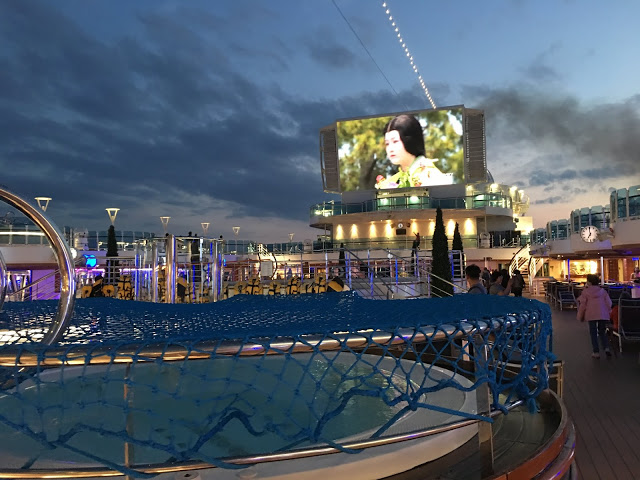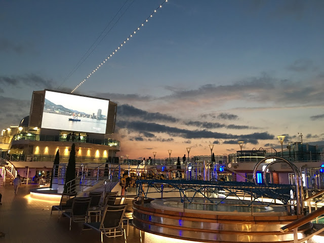 沒飯吃!!!~開始在盛世公主號亂晃 16樓的星空劇院,戶外泳池都在這裡晚上常播一些很新的電影