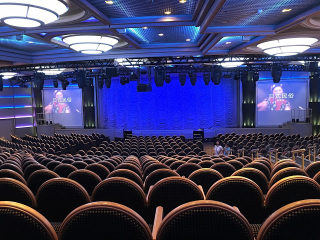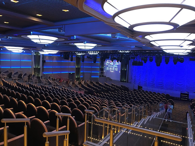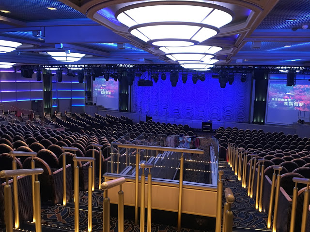 9:45分表演才會開始,我們9點15分左右到已經很多人了,所以要看表演真的要提早來找位子 挑一個自己喜歡的視野坐下後,等待表演的開始 表演全程都是英文但不用擔心,表演內容故事淺顯易懂,且還有中文字幕很貼心,不得不說公主劇院的表演真的很精彩,每個表演者歌喉都超利害,水準超高整場表演每段都很精彩絕無冷場 公主劇院的表演是那種表演一開始後,每個人馬上鴉雀無聲專心看表演 表演結束後會忍不住起雞皮疙瘩的那種精彩,結束後現場掌聲歡呼聲不斷,只能用非常精彩來形容 真得很佩服台上的表演者,來搭盛世公主號建議公主劇院一定要來看