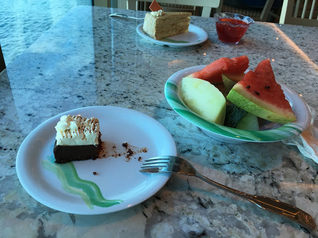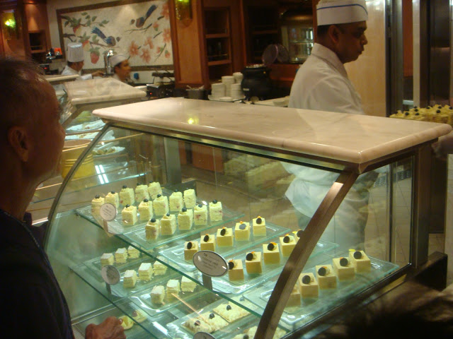 今天扣掉早上排隊登船沒有吃早餐以外 ,中午吃披薩,經過國際點心吧又吃蛋糕,下午啟航後又去16F吃蛋糕+水果下午茶,晚上跑去主餐廳吃晚餐,一天吃四餐吃的飽飽飽!!我們差點就達成,一天吃五餐的成就(婉惜!!~哈!)XD