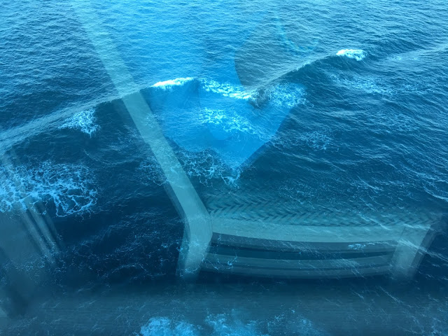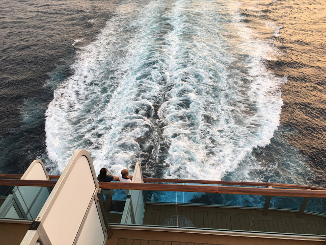 船尾航行的水花很漂亮,下面客房區陽台都好大,我猜想應該是頭等艙的客房