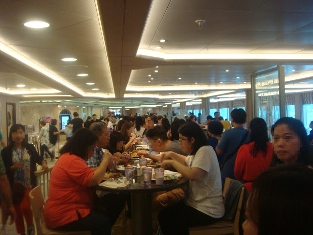 真的是滿滿滿!!!~一個座位都沒有,所以當下決定晚點再吃東西,先去參觀船上設施,熟悉一下船上各個地方