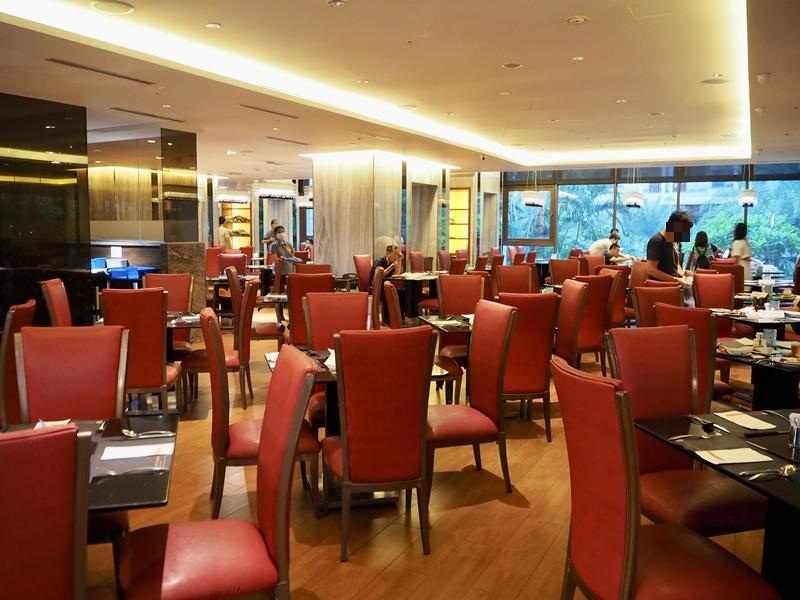 礁溪長榮鳳凰酒店2樓的桂冠自助餐廳用餐環境還滿不錯的,紅色搭配金色系感覺就很金碧輝煌的感覺,座位跟座位之間也不會很壅擠