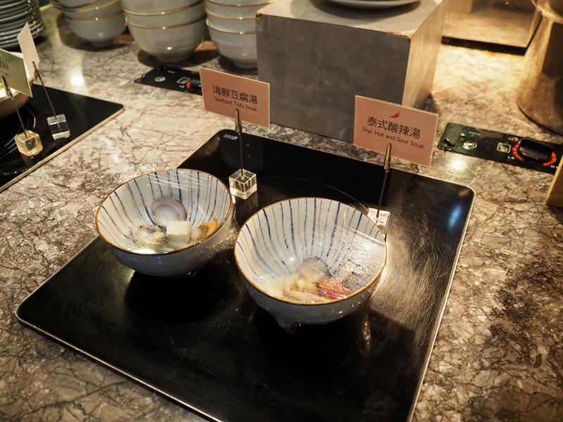 ↑ 海鮮豆腐湯、泰式酸辣湯,在這冷冷的泡湯季節來到飯店泡溫泉還能喝到現作的熱湯真的是最幸福的事情了、而且廚師們都很貼心,給你的份量都滿小碗的,讓你多留些肚皮可以吃其他東西 XD
