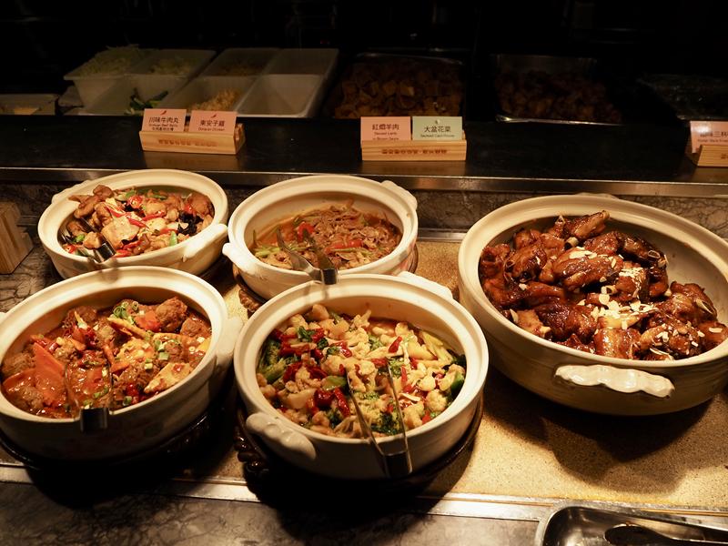 ↑ 川味牛肉丸、紅悶羊肉、大盆花菜,看起來都滿美味的可惜肚皮只有一個,不然好多料理看了都超想吃,連東安子雞這種國宴菜都有