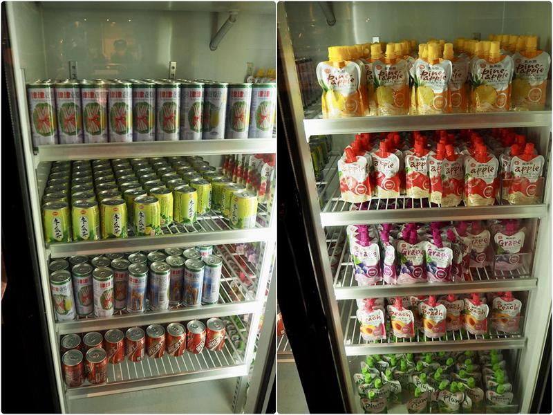 罐裝飲料、果汁、汽水等等的種類超多,還有果醋系列飲品