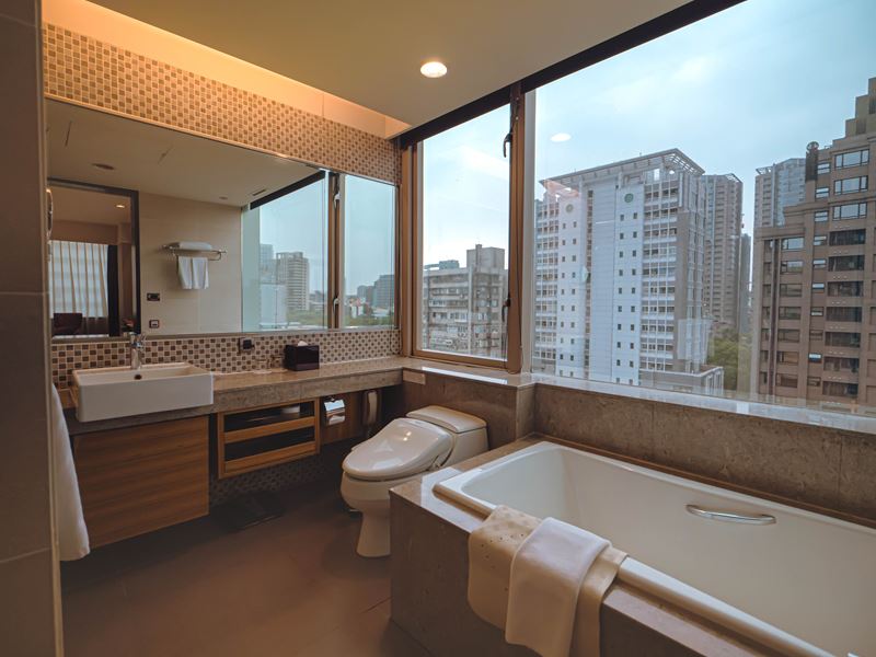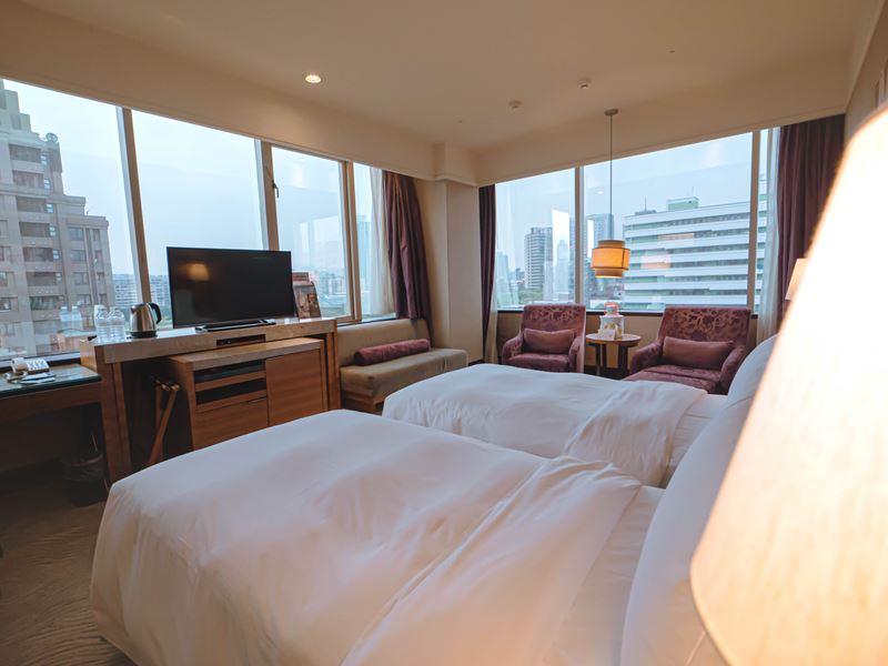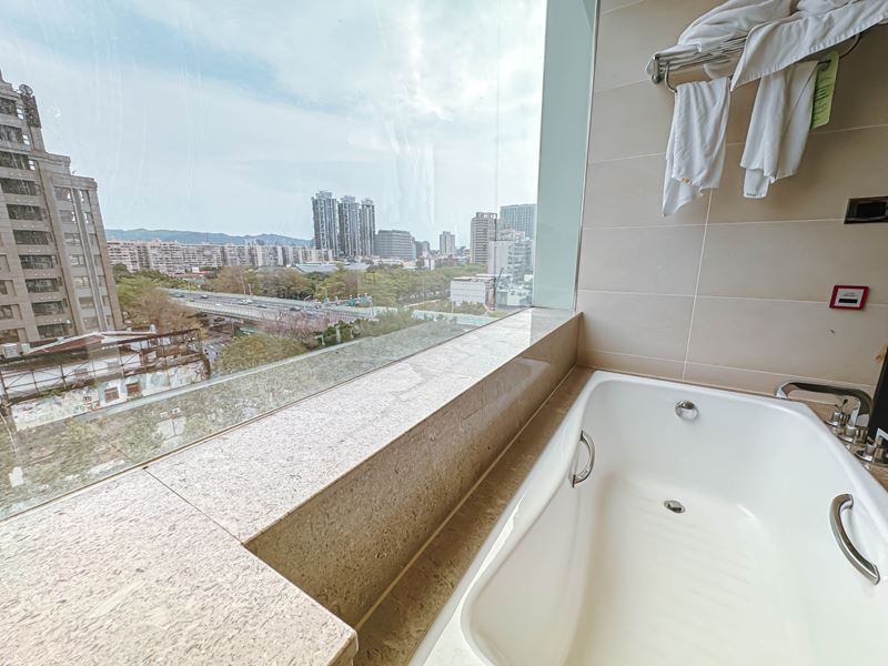 台北一館有推出壽星住房專案,入住精緻客房即可升級90度環景的豪華客房,雖說這間比行政家庭房小一些,但面向街道的景色比較漂亮,窗外還可以看到101大樓