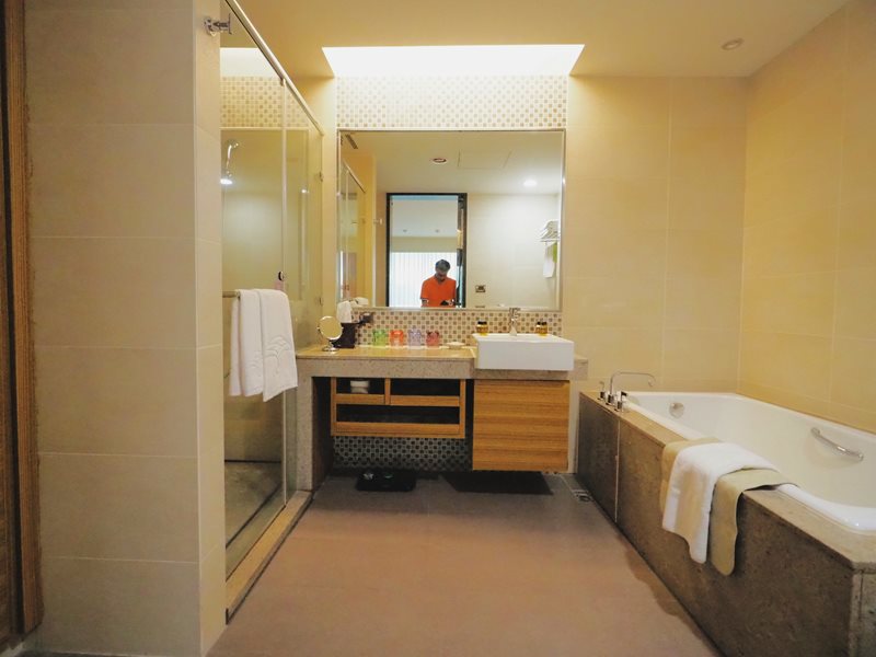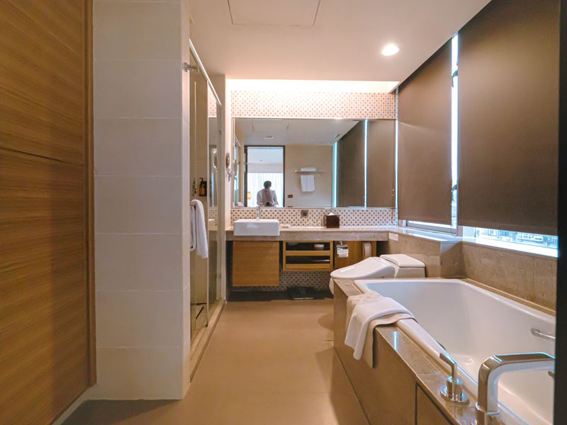 不只房間大連浴室空間也是超級大,乾式分離的淋浴間,大理石洗手台以及泡澡浴池,免治馬桶等等的設備應有盡有