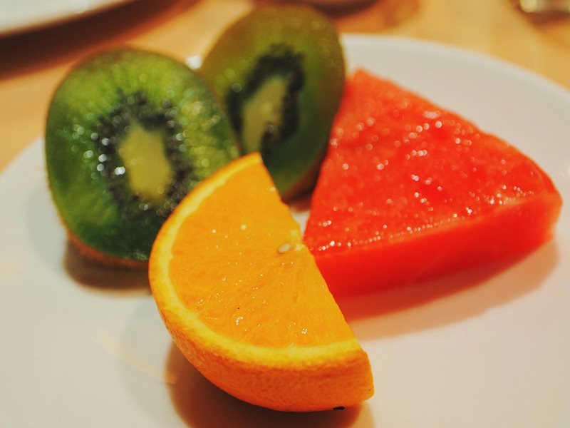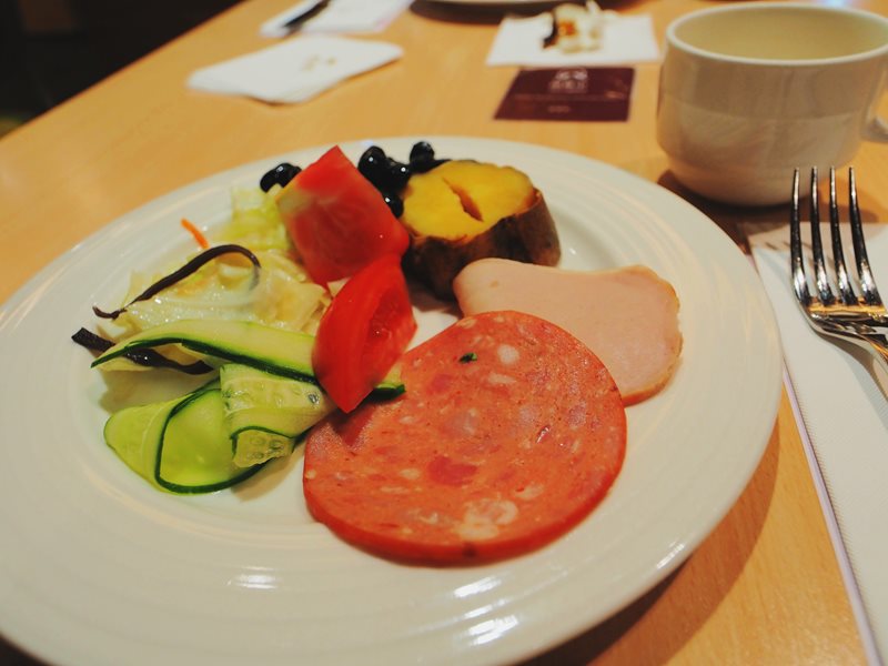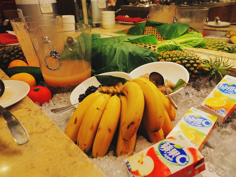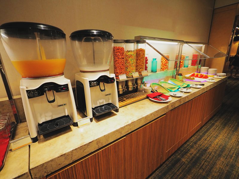 取餐區就如上圖看到的這個小區域,雖然區域不大,但餐點品項很滿豐富:熟食、清粥小菜、生菜沙拉、水果、飲料等等的一樣也不缺
