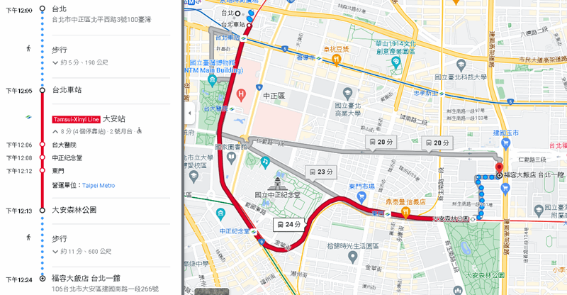 搭乘台鐵或高鐵:至台北車站下 → 轉搭台北捷運(紅線往象山方向) → 至大安森林公園站下 → 步行約10分鐘即可抵達福容台北一館