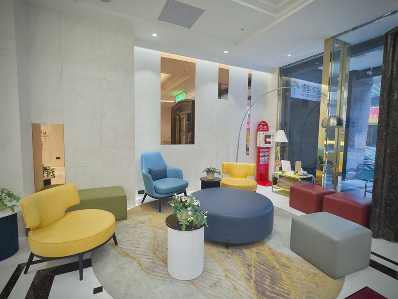 旁邊還設有沙發座椅區域,提供旅客一個放鬆休憩的空間,無論是等待入住或是稍作休息,都能感受到貼心的安排