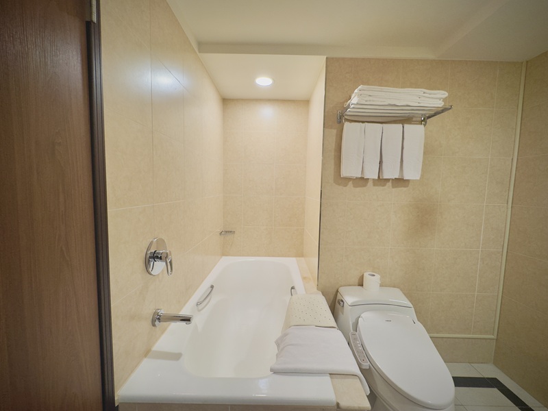 浴室不僅有乾濕分離的淋浴間,還設有一個超大的浴缸,感覺就像是可以好好享受泡澡的地方