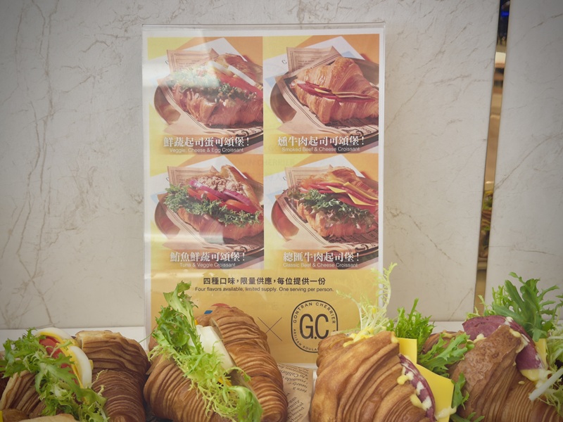 而這次來到中壢徠旅,則是提供了美味的可頌堡,而且還貼心地準備了四種口味可以選擇