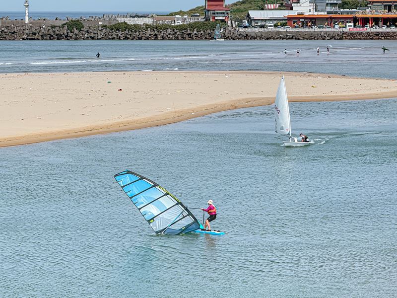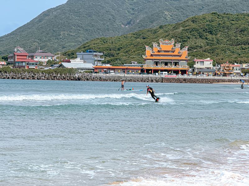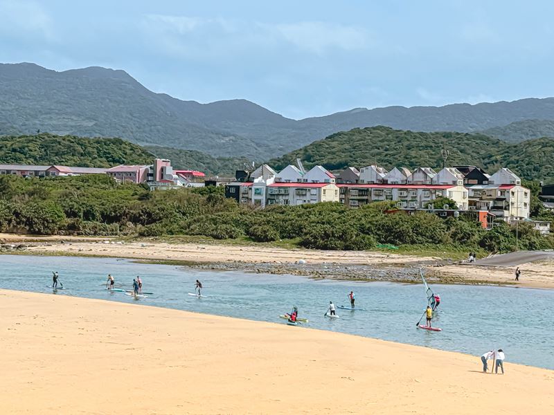 橋上視野還滿不錯的,可以看到遠處正在準備的福隆沙雕季,以及在海上玩SUP、風帆、戲水等等的人們