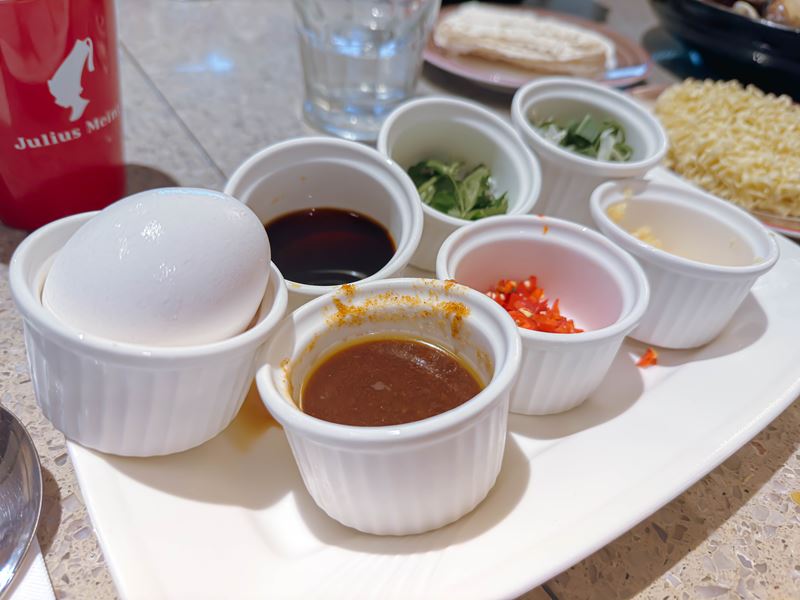 ↑ 醬料盤也很豐富:沙茶、醬油、辣椒、蔥花、蒜泥、香菜、蛋