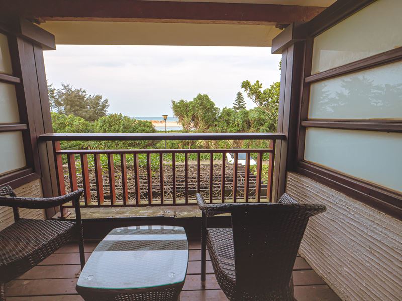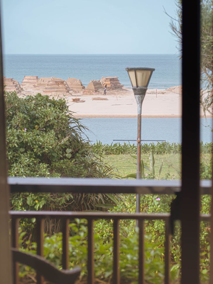 房內的陽台面向著福隆海灘,視野還滿不錯的,可以看到正在準備當中的福隆沙雕季,如果在正值展覽期間來到這裡,在房內靜靜地坐著就可以欣賞到沙雕,還真是愜意啊