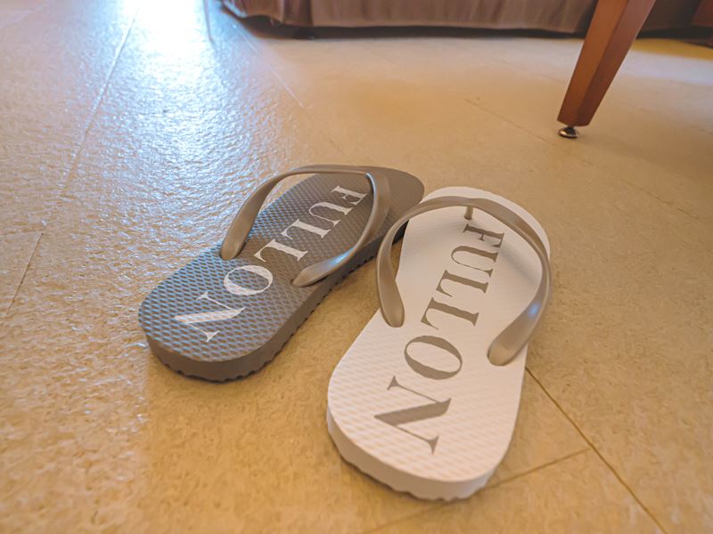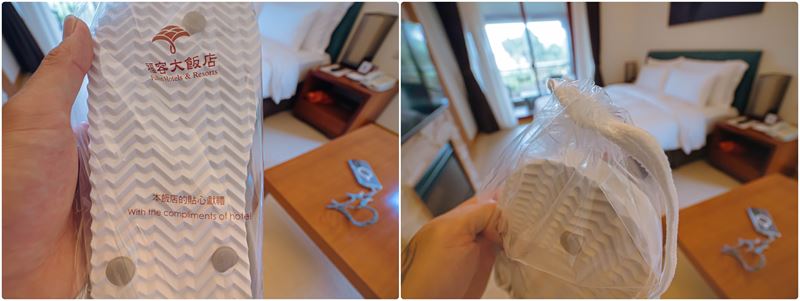 房內還有準備用束口袋裝著的拖鞋,這是可以穿著去福容海水浴場遊玩,而且鞋子在住宿結束也是可以帶回家的