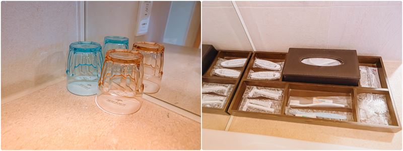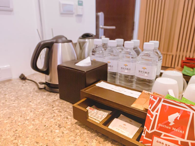 ↑ 房內的小吧檯有提供礦泉水以及茶杯、茶包、咖啡