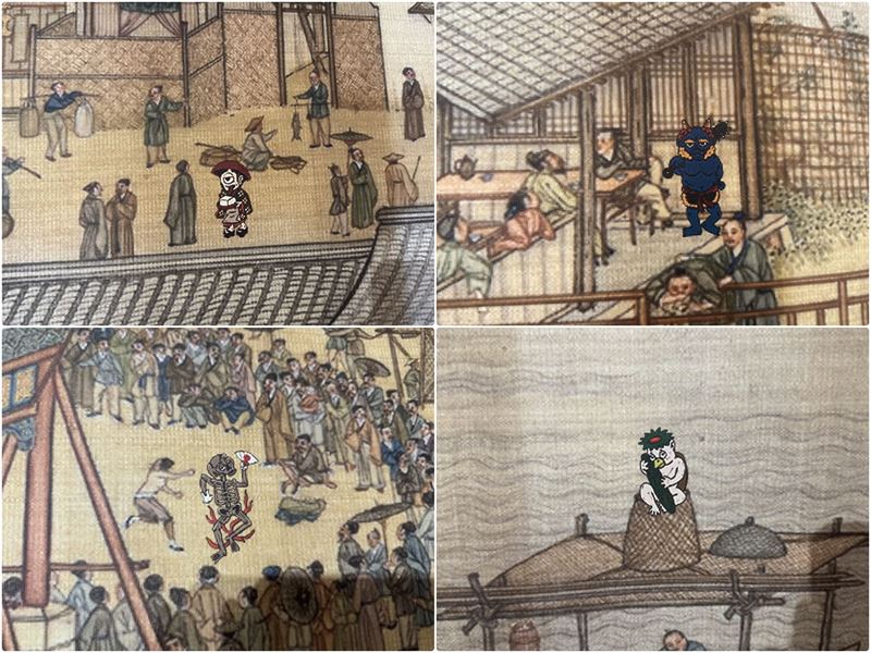 在休閒設施的走廊上發現這一個有趣的妖怪上河圖,看看你可以找到在圖中有幾隻妖怪,我是找到了16隻,如果有找到更多的人可以留言跟我說 (笑)