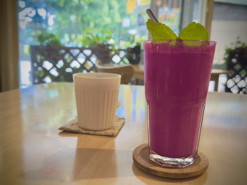 由火龍果製作的果汁優格,口感濃郁滑順,喝起來還帶著奶昔般的細緻感