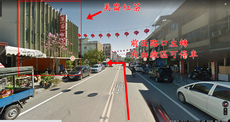 接著繼續行駛即可看到化道路上的美崙紅茶在左手邊,附近是市場不太好停車,可以繼續往前行駛路口左轉後有很多白線區域可以停車