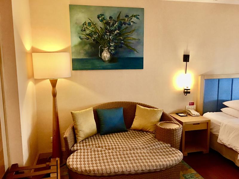 飯店走廊各角落都有設計休息區給逛累了的住客小歇一下