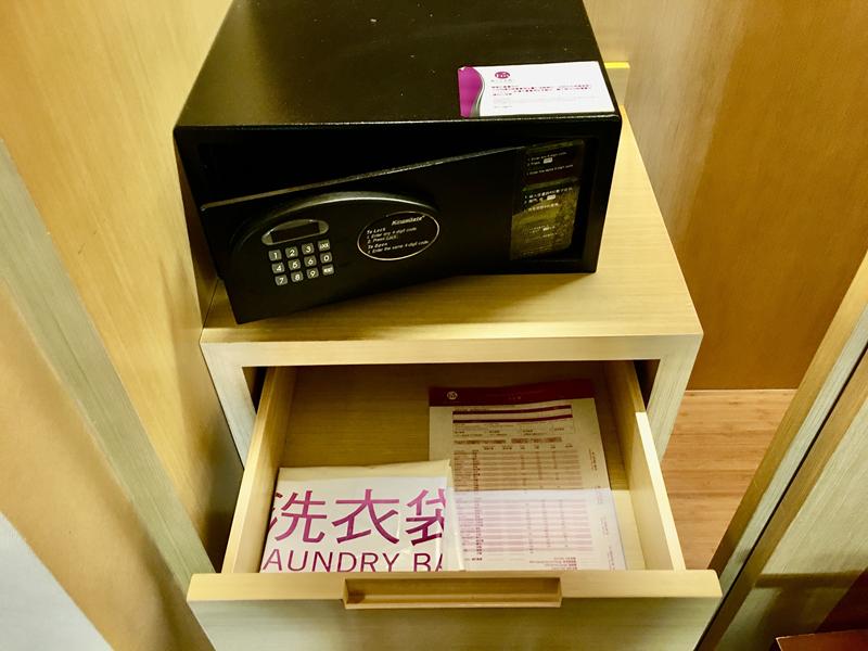 入門口旁的衣櫃內有提供枕頭備品、衣架、保險櫃