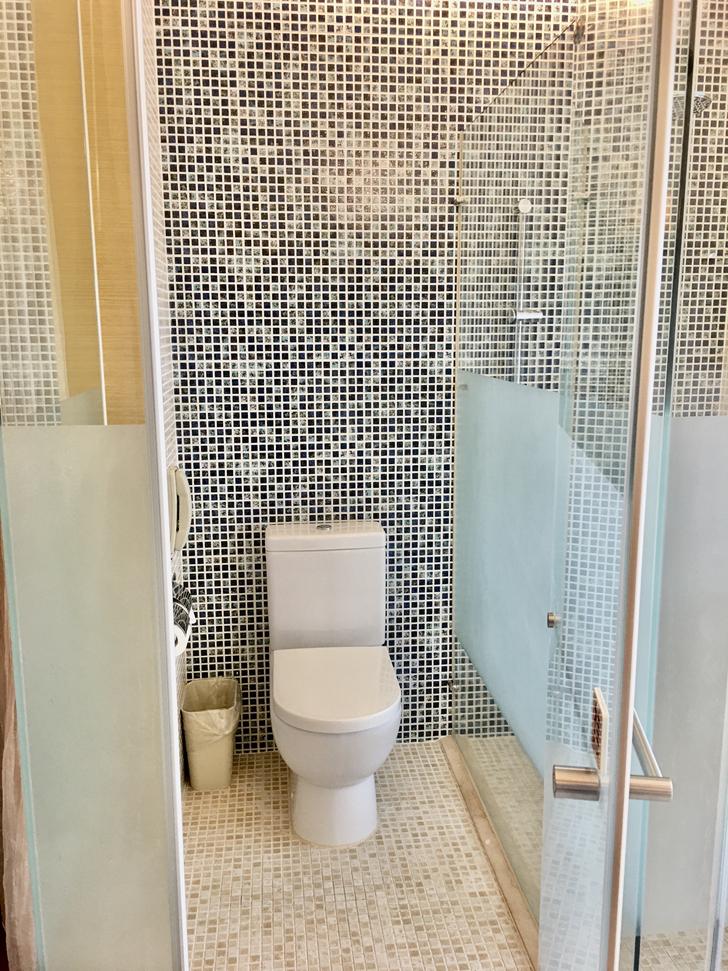 淋浴間跟廁所採分開的設計,左邊是廁所,右邊是淋浴間