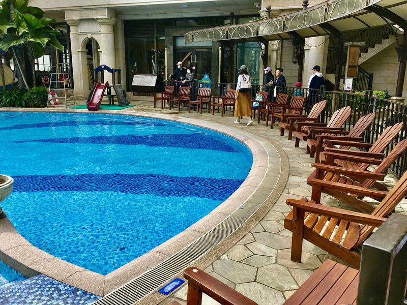 飯店內的遊泳池區域很大有,深水游泳區,也有親子戲水區,還有兩層樓高的滑水道,高雄一年四季都很適合玩水,快帶著小孩來這裡盡情的玩水吧