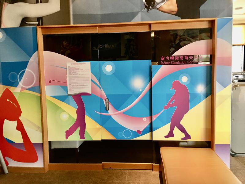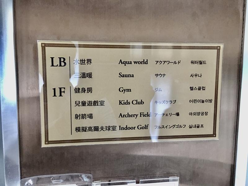 1F設施有:健身房、兒童遊戲室、射箭場、模擬高爾夫球室、遊戲區休閒區