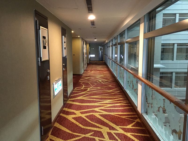 通往房間的走道明亮乾淨,地毯柔軟走起來很舒適