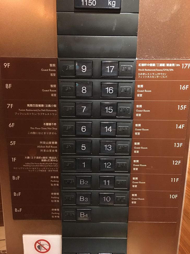 電梯內有各樓層對照表: