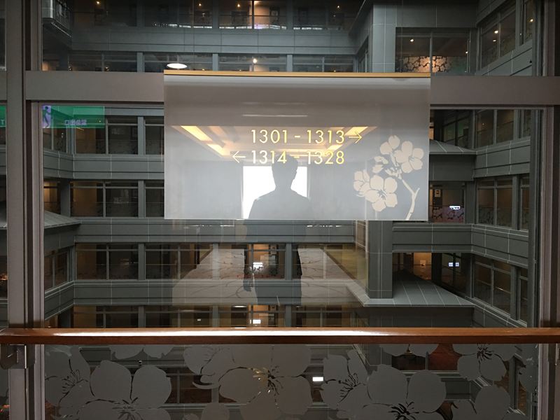 一出電梯門口會有房號指引,跟著你住的房號指引走很快就可以找到房間