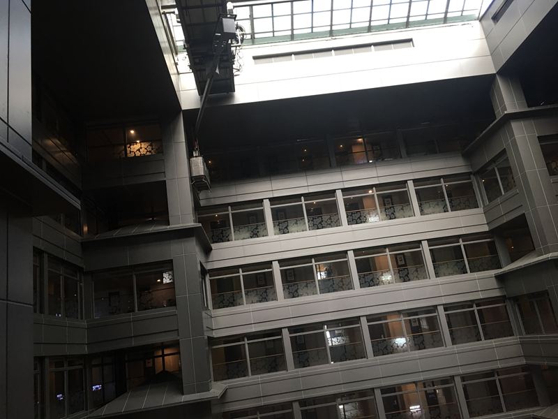 飯店內的環境採用天井式的走廊,採光非常好且氣派