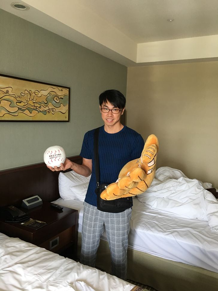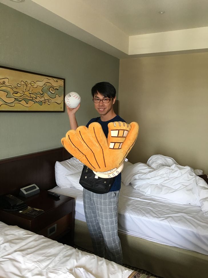 其中一張床上放著這次耐斯飯店的主題「棒球」抱枕