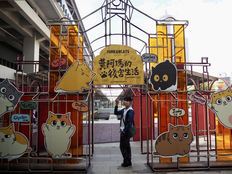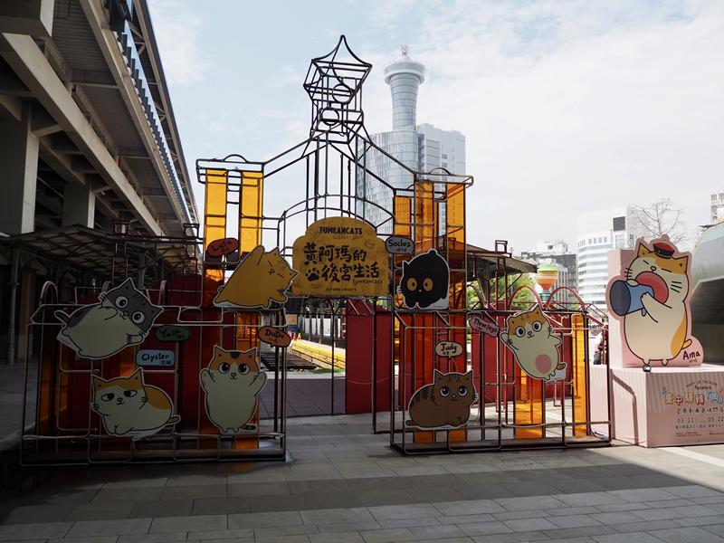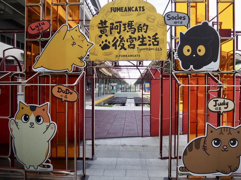 一來到車站就看到黃阿瑪的逗趣牌樓,除了黃阿瑪以外還有許的萌貓角色:嚕嚕、搜可史、三角、浣腸、柚子,等著你來跟他們合照