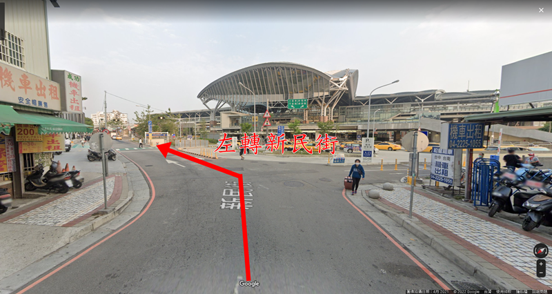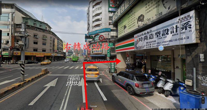 下交流道後於臺灣大道左轉建國路在行駛至成功路口右轉