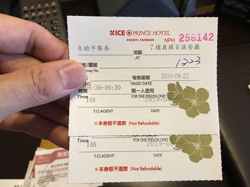 把早餐卷拿出來交給服務人員