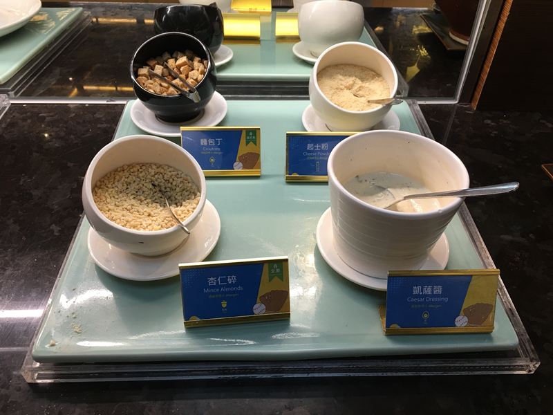 葡萄乾、杏仁粒、花生粉、麵包丁、南瓜子、和風醬、千島醬等等
