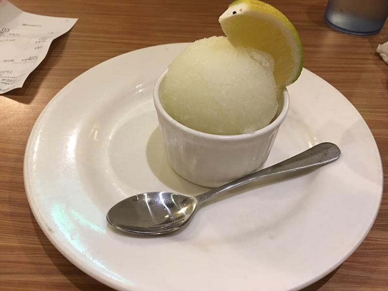 微酸的冰沙剛好解了餐點的油膩,以這個甜點當結尾,清涼消暑又解膩 XD