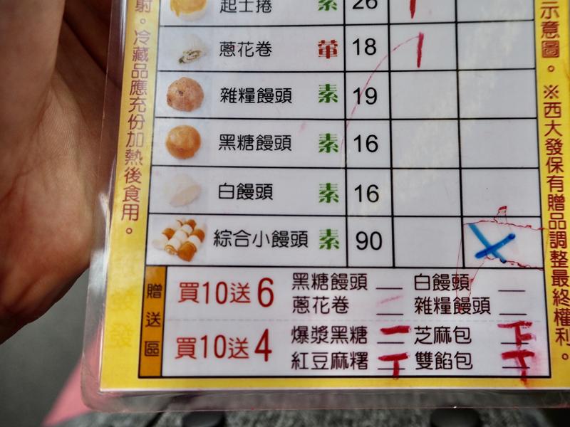 西大發不只包子好吃也相當的佛心,只要任選10種口味就能買10送6、或買10送4(擇一)