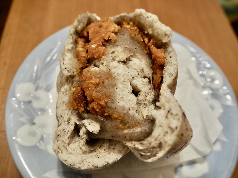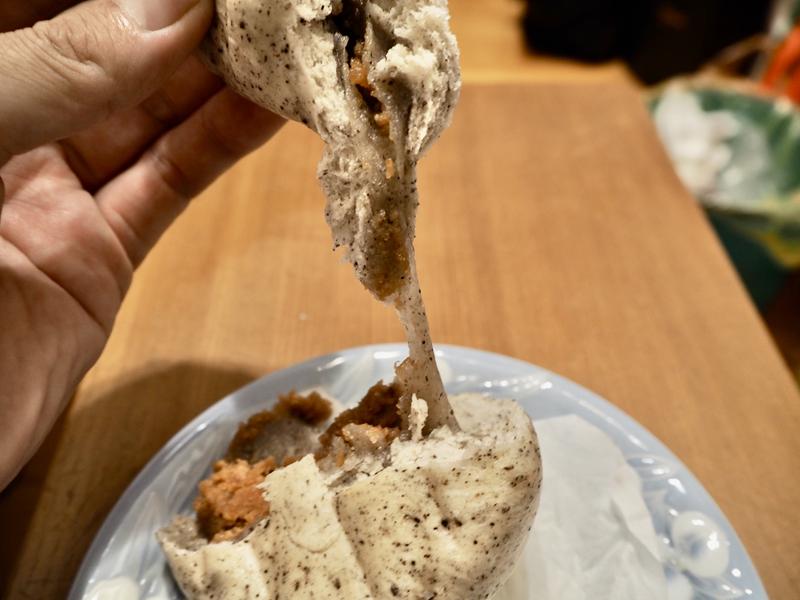 包子內壁還吃的到一點點麻薯的口感,這一個芝麻包連魚媽都讚不絕口