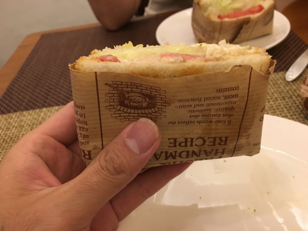 吃完老闆娘請客的炸雞後三明治也來了