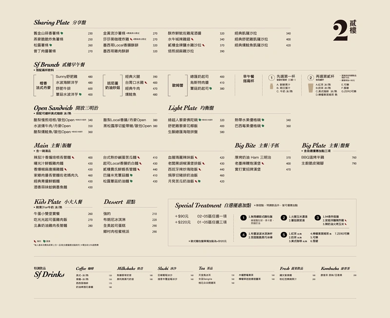 貳樓最佛心的就是這個!點選特定系列餐點會提供兩杯飲品。- 包含紅茶、咖啡、汽水等多款品項可以無限續杯,甚至還可以更換種類喝,非常適合跟朋友聊天坐很久。