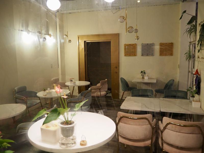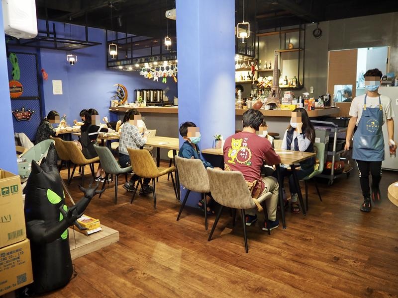 1F店內的用餐空間就有兩種風格,靠近門口的用餐空間繽紛的馬卡龍粉色系+大理石白色桌椅營造出舒適明亮的用餐空間,在往裡面走馬上變成了美式風格的酒吧空間