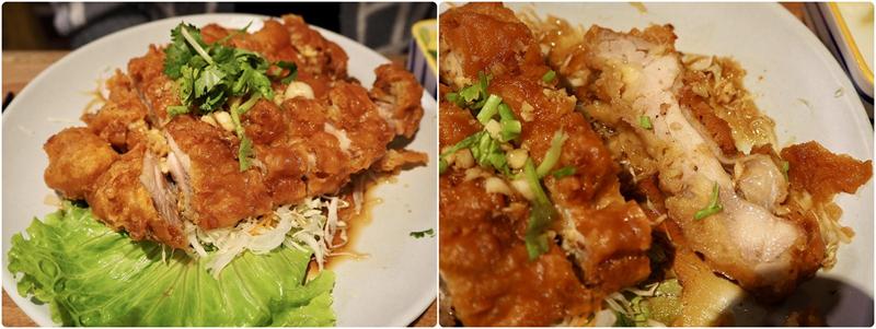 可以選擇要辣還是不辣,隨餐附的小菜都一樣就不多做介紹了,但主餐的椒麻雞份量超大,而且切面的肉片超厚吃起來很滿足,炸到脆脆的外皮加上微酸的醬汁,這個椒麻雞套餐說他是目前流浪魚吃過最好吃的椒麻雞套餐也不為過